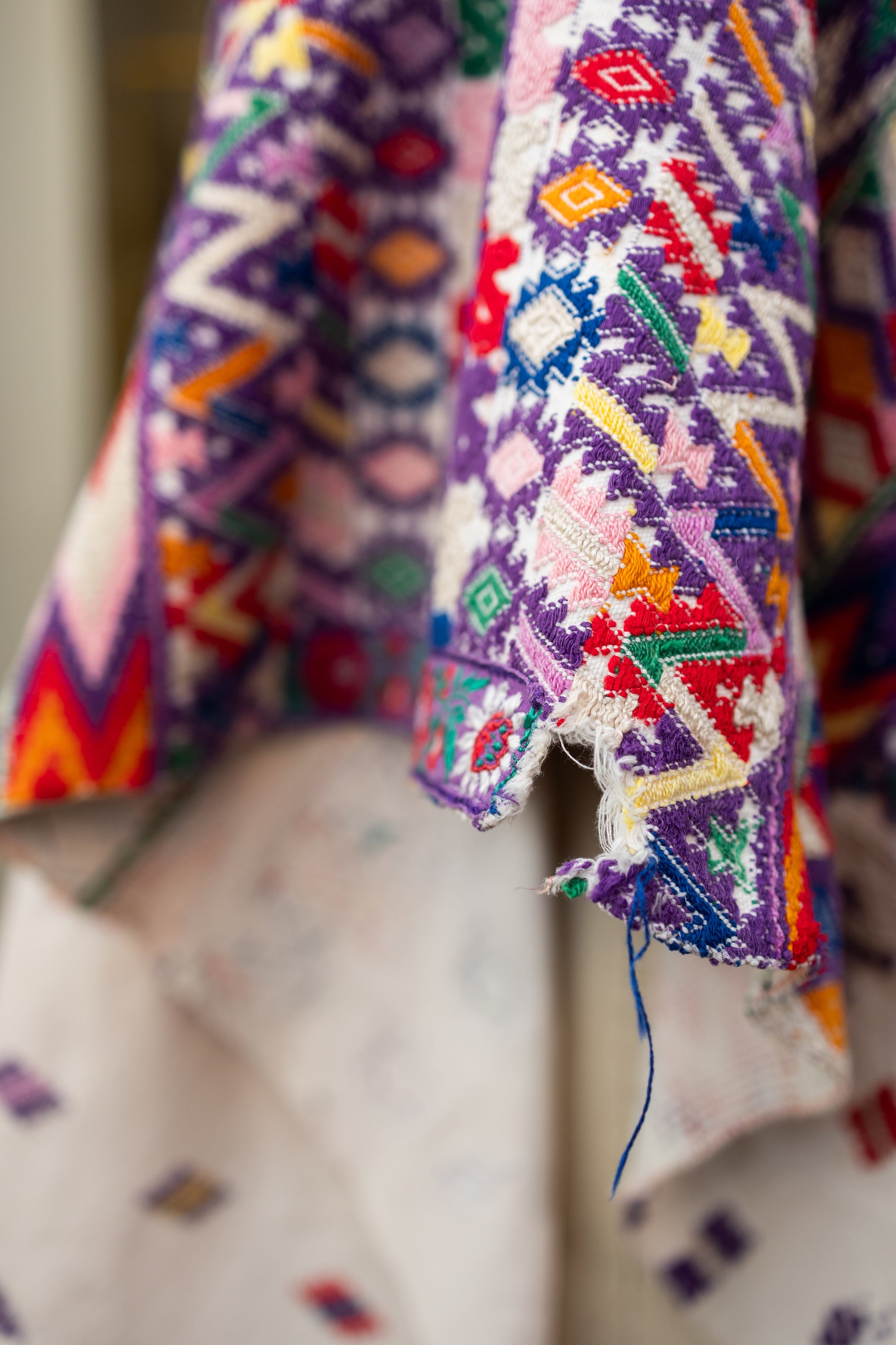 This piece shows areas of age and wear consistent with authentic vintage huipiles — including minor thread pulls and some fraying at the neckline — all adding to its character, story, and handmade quality.