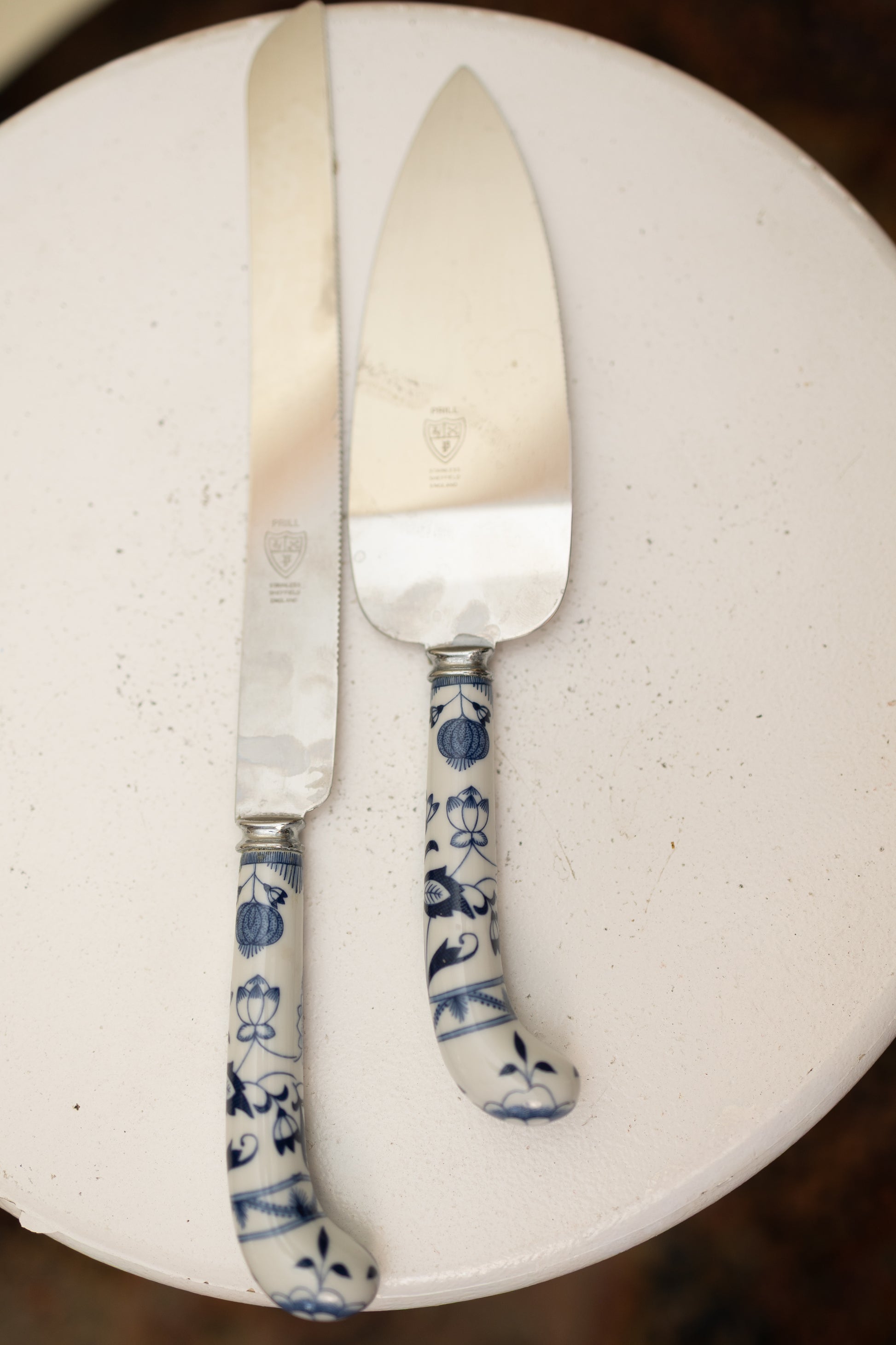 Vintage F.R.I.E.L.L. Germany Cake Knife & Server Set — Blue Onion Porcelain Handles *COMING SOON*